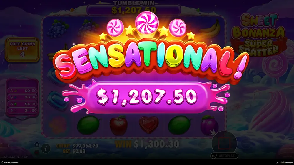 Additional scatters can give you five more spins, allowing you more time to rack up big wins in the bonus round. This is where the game’s biggest prizes can be won, so make sure you spin those reels and catch those lollipops.
